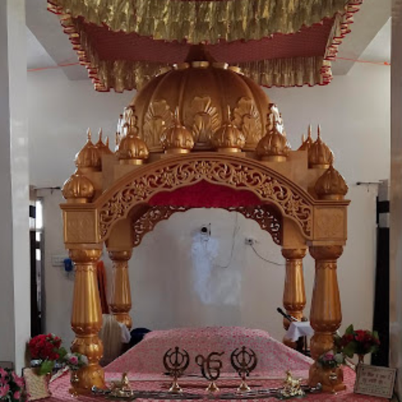 Premium golden Fibreglass Palki Sahib manufactured by Asia Fibre Arts, featuring a complete set including Manji Sahib, Side Grill, Front Grill, and Golak. Expertly crafted with intricate carvings and a regal finish, ideal for Gurudwaras seeking durability, elegance, and traditional Sikh architectural beauty.
